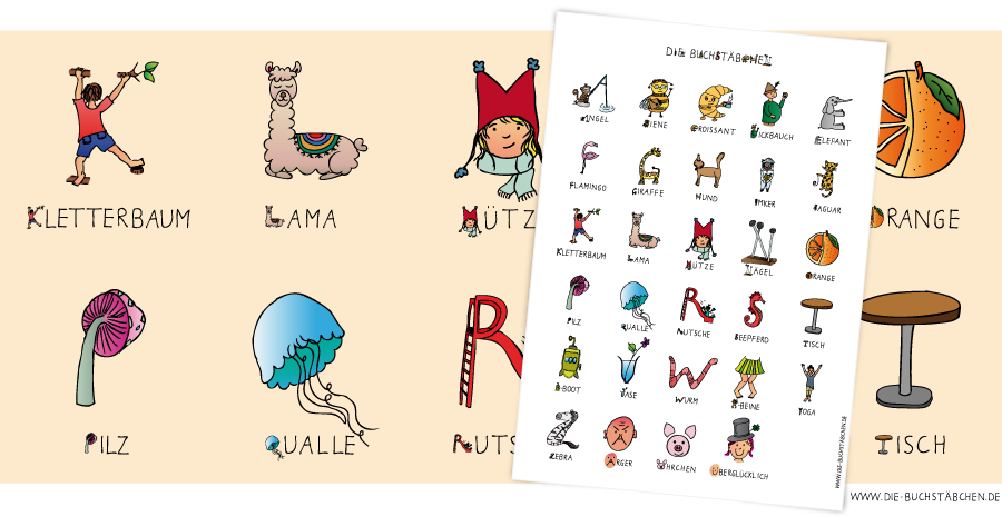 Diese werden auch Lauttabellen oder Buchstabentabellen genannt und zeigen die Zuordnung vom Buchstaben zum entsprechenden Laut (z B. einen Apfel für den Buchstaben A).