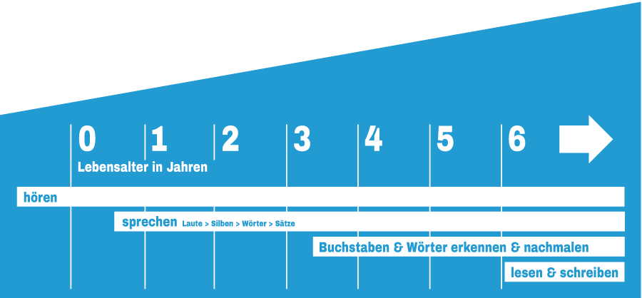 Um von der gesprochenen Sprache zur Schriftsprache zu gelangen, muss das Kind zunächst erkennen, dass jeder Buchstabe eine entsprechende Lautübersetzung hat,